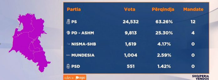 Të përkthyera në mandate PS ka marrë deri më tani 12 mandate, kurse PD-ASHM ka marrë 4 mandate. Qarku i Fierit ka gjithsej 16 mandate.