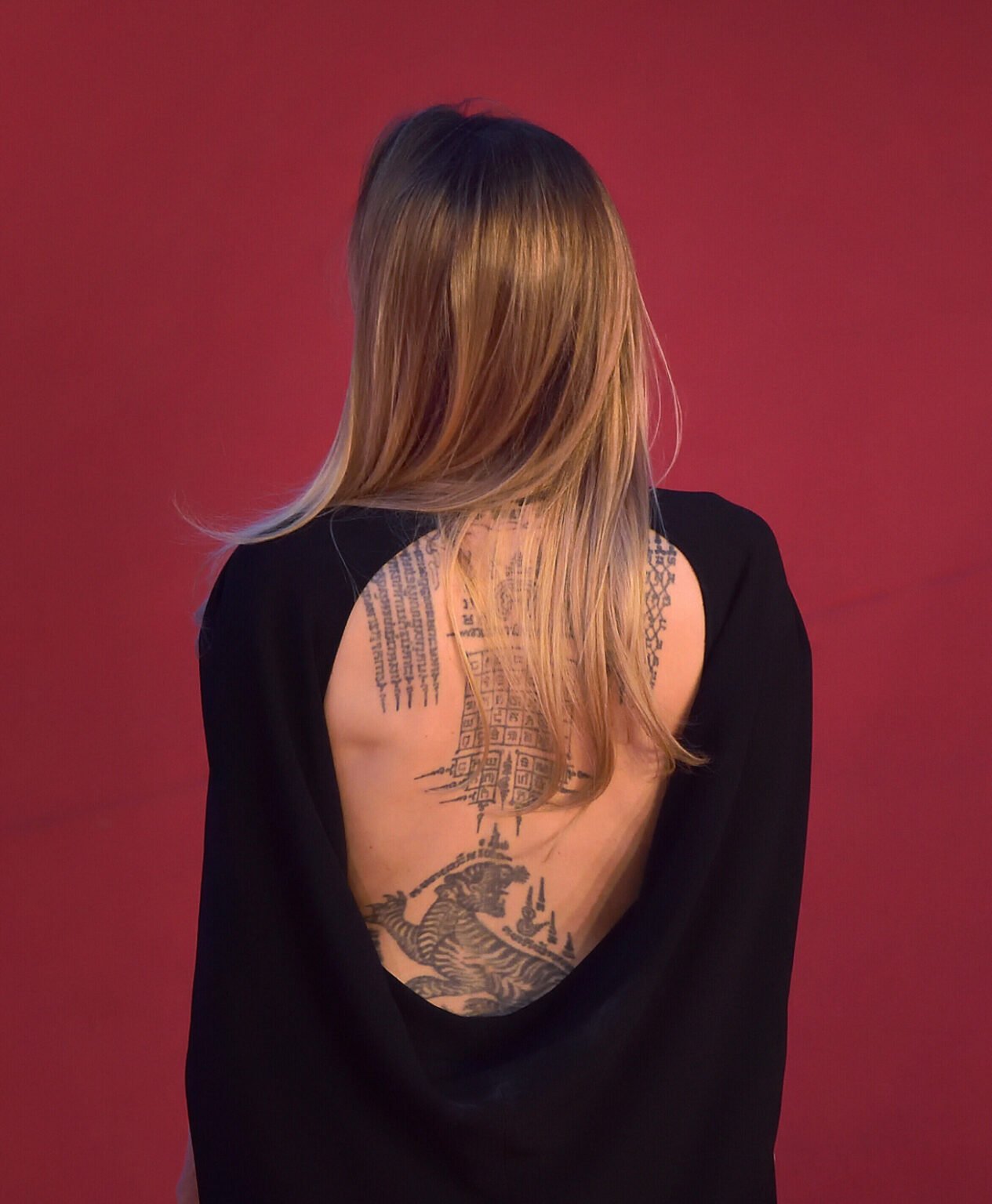 Angelina Jolie vodhi shfaqjen në tapetin e kuq në premierën e filmit “Couture” në Romë, ku u shfaq me një fustan të zi mahnitës me shpinë të hapur që zbulonte tatuazhet e saj të mëdha.
