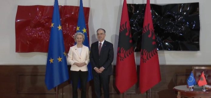 Vizita e saj nisi në Tiranë ku von der Leyen u takua me Presidentin e Shqipërisë, Bajram Begaj, dhe më pas do zhvillojë takim me Kryeministrin Edi Rama.