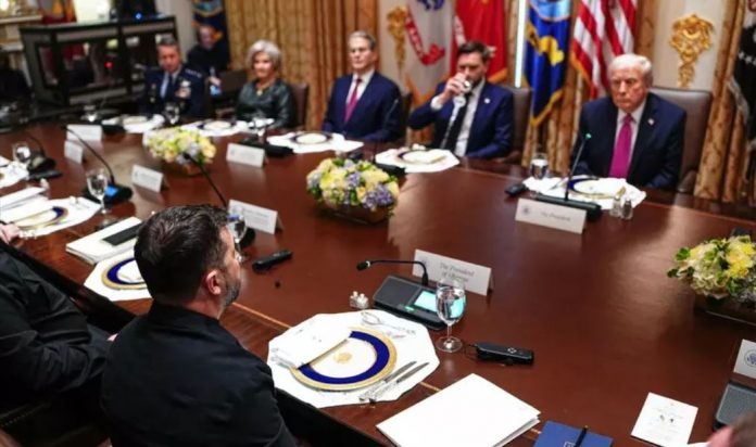 Sipas burimeve, Trump hodhi tutje hartat e vijës së frontit në Ukrainë dhe këmbënguli që Zelensky t’ia dorëzonte të gjithë Donbasin Putinit dhe përsëriti pikat kryesore të ngritura nga udhëheqësi rus në bisedën e tyre një ditë më parë.