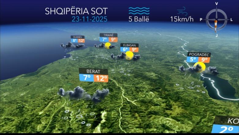 Ditën e diel vendi ynë do të ndikohet nga kushte atmosferike të paqëndrueshme. Moti parashikohet të jetë me vranësira mesatare deri të dendura. Reshje shiu të herëpashershme që në orët e para të 24-orëshit deri në orët e mëngjesit në pjesën më të madhe të vendit me intensitet të ulët, ndërsa në veriperëndim dhe në jugperëndim, reshje shiu me intensitet kryesisht mesatar, hera-herës shtrëngata shiu shoqëruar me shkarkesa elektrike.