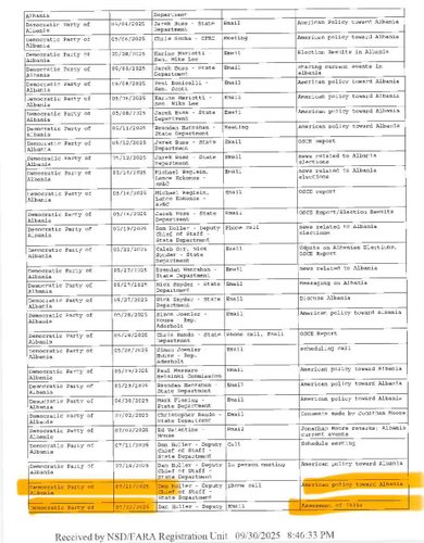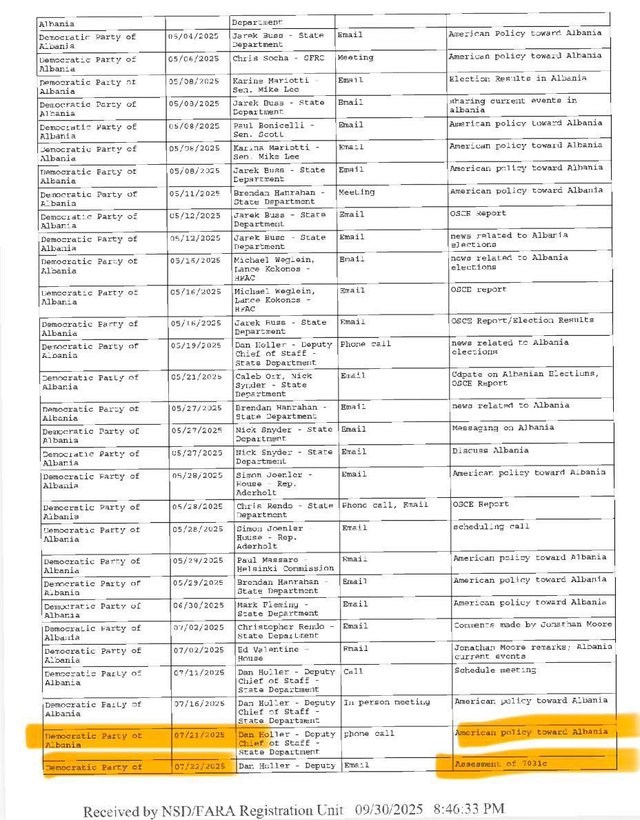 Ajo vë në dukje gjithashtu se në deklarimet e Continental pranë FARA-s përmenden telefonata, emaile dhe takime me përfaqësues të Departamentit të Shtetit, të cilat fillimisht janë klasifikuar si “American Policy towards Albania”, por më pas janë specifikuar qartësisht si “Assessment of 7031(c)”, një referencë direkte ndaj nenit të ligjit amerikan që parashikon ndalimin e hyrjes në SHBA për zyrtarë të huaj të përfshirë në korrupsion.