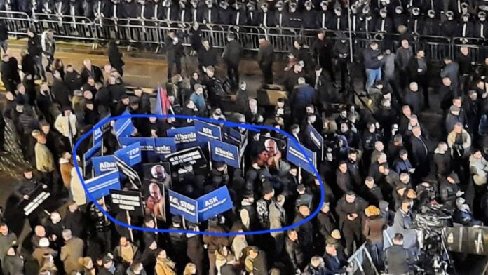 Për të inkurajuar militantët e tij që të vazhdojnë vandalizimin e Kryeministrisë, Sali Berisha qëndroi në podium duke valëvitur flamurin kombëtar ndërkohë që drejt godinës qeveritare hidhedhin në breshëri molotovë dhe fishekzjarrë.