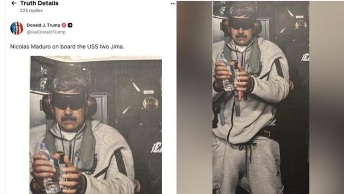 Presidenti amerikan Donald Trump ka publikuar një foto në rrjetin Truth Social ku shfaqet presidenti venezuelian Nicolas Maduro në bordin e anijes ushtarake që po e transporton drejt SHBA-së.
