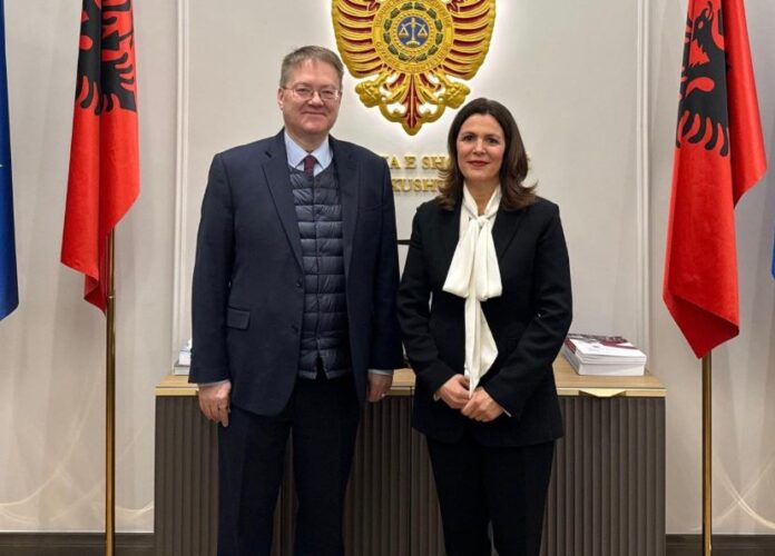 Takim i Kryetares së Gjykatës Kushtetuese me Ambasadorin e Mbretërisë së Bashkuar në Shqipëri, 11 shkurt 2026. Kryetarja e Gjykatës Kushtetuese, znj. Fiona Papajorgji, priti në një takim kortezie Ambasadorin e Mbretërisë së Bashkuar në Shqipëri, Sh.T.Z. Nicholas Abbott, i cili shoqërohej në këtë takim nga z. John Walker, Sekretar i Dytë për Çështjet Politike, të Brendshme dhe të Drejtësisë. Ambasadori Abbott nënvizoi rëndësinë e angazhimit të Gjykatës Kushtetuese në forcimin e shtetit të së drejtës dhe shprehu mbështetjen e plotë për nisma që garantojnë forcimin e pavarësisë institucionale. Kryetarja Papajorgji vlerësoi rëndësinë e dialogut të hapur me partnerët ndërkombëtarë në funksion të konsolidimit të drejtësisë kushtetuese, duke u fokusuar mbi rolin dhe funksionin e saj në garantimin e shtetit të së drejtës dhe mbrojtjen e të drejtave themelore, si dhe mbi zhvillimet më të fundit në veprimtarinë e Gjykatës Kushtetuese. Po ashtu, gjatë takimit u diskutuan edhe mundësitë për forcimin e mëtejshëm të bashkëpunimit profesional, shkëmbimin e përvojave dhe mbështetjen ndaj iniciativave që synojnë rritjen e standardeve institucionale dhe të transparencës.