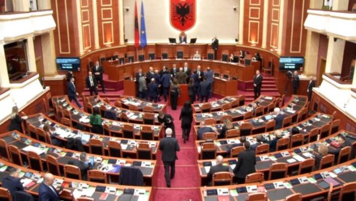 Seanca plenare po vijon me debate. Flamur Noka bllokoi foltoren e Kuvendit. Në ndihmë i erdhën edhe deputetët e opozitës të cilët kanë rrethuar foltoren dhe nuk lejojnë deputetët socialistë të flasin.